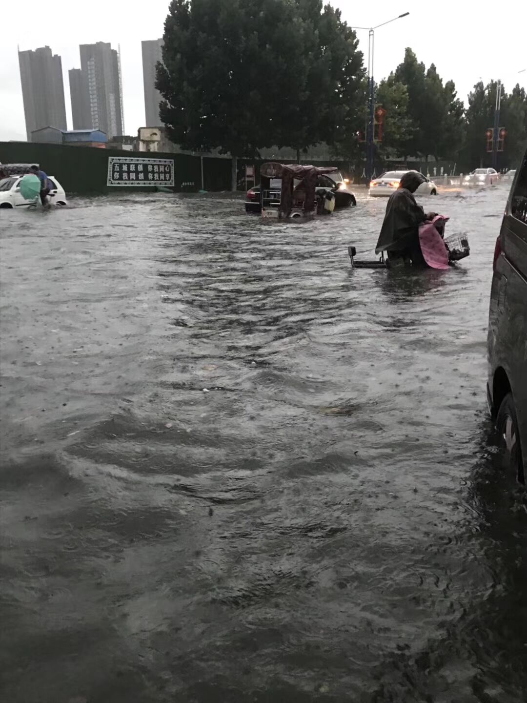 26日下午,一場(chǎng)暴雨突降周口。降雨帶來些許清涼的同時(shí),也給城市生活帶來不便。周口城區(qū)多條道路變成“澤國”。