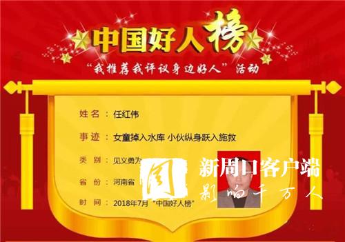 7月30日,中央文明辦全國(guó)道德模范與身邊好人現(xiàn)場(chǎng)交流活動(dòng)在長(zhǎng)春舉行,現(xiàn)場(chǎng)發(fā)布了7月“中國(guó)好人榜”,太康縣任紅偉光榮入選7月份見(jiàn)義勇為類(lèi)中國(guó)好人榜。目前,太康縣入選中國(guó)好人榜人數(shù)已達(dá)39人。