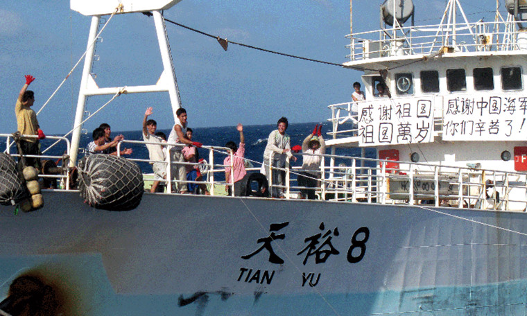 接到命令后, ??谂炏蚰霞铀俸叫校繕?biāo)只有一個,那就是早日接回“天裕8號”。2008年11月14日,天津遠(yuǎn)洋漁業(yè)公司所屬的金槍釣漁船“天裕8號”在肯尼亞沿海漁場作業(yè)時,遭到攜帶榴彈發(fā)射器和自動武器的索馬里海盜劫持。此后,“天裕8號”船員的命運牽動著每一個國人的心。早日把他們從海盜手中解救出來,是每一位中國人的心愿。