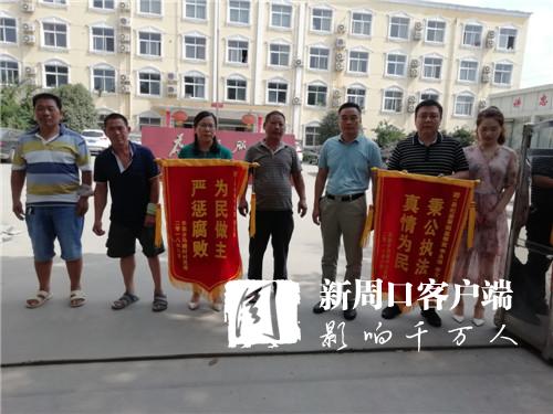 8月7日上午,淮陽(yáng)縣朱集鄉(xiāng)馬樓行政村的6名村民將兩面寫有“為民做主、嚴(yán)懲腐敗”和“秉公執(zhí)法、真情為民”的錦旗分別送到該縣紀(jì)委審理室和第四監(jiān)察室負(fù)責(zé)人手中,以表達(dá)他們的感激之情。