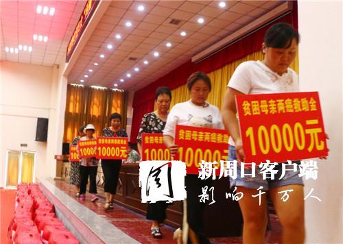 來自唐集鄉(xiāng)王莊村的吳鳳芝拿到一萬元救助金后激動不已,連稱:“謝謝黨委、政府,謝謝婦聯(lián)對我們的關(guān)愛……” 據(jù)了解,自河南省婦聯(lián)實施“兩癌”貧困婦女救助項目以來, 鹿邑縣婦聯(lián)積極組織,通過鄉(xiāng)鎮(zhèn)婦聯(lián)對全縣26個鄉(xiāng)鎮(zhèn)的貧困“兩癌”患者進行摸底和檔案審核,并通過中國婦女網(wǎng)為符合條件的“兩癌”貧困婦女申請救助。截止目前,鹿邑縣婦聯(lián)共向上申請救助金23萬元,救助23名貧困“兩癌”患者,今天得到救助的6名貧困母親每人將獲得1萬元的資金救助。