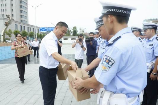 夏末秋初,鹿邑縣高溫天氣持續(xù)不斷,廣大民警忠誠(chéng)履職、堅(jiān)守一線,戰(zhàn)高溫、斗酷暑,全力維護(hù)人民群眾生命財(cái)產(chǎn)安全。8月16日下午,鹿邑縣四大班子領(lǐng)導(dǎo)付吉廣、張麗娟、王新民、劉銀、何新敏、宋克言等領(lǐng)導(dǎo)深入執(zhí)勤一線看望慰問(wèn)了縣公安局交警大隊(duì)、巡特警大隊(duì)執(zhí)勤民警,并送去慰問(wèn)品。