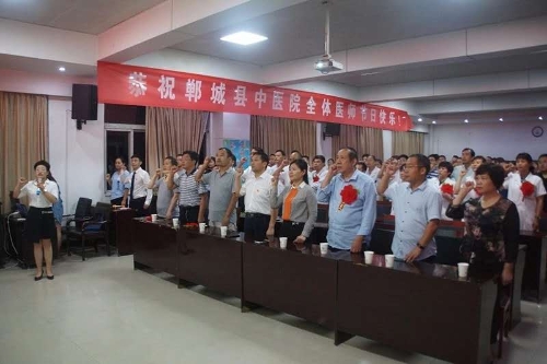 在鄲城縣中醫(yī)院醫(yī)務(wù)部主任肖儉的帶領(lǐng)下,中醫(yī)院的醫(yī)師們莊重地舉起右拳,莊嚴(yán)地宣誓,決心嚴(yán)格遵守誓言,時刻以中國醫(yī)師宣言為激勵,以自身的實(shí)際行動踐行誓言,忠誠于醫(yī)療衛(wèi)生事業(yè),全心全意為人民健康服務(wù),恪守醫(yī)德、團(tuán)結(jié)合作、精益求精,做人類健康的衛(wèi)士。