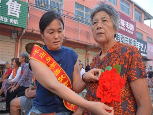 據平店鄉(xiāng)黨委書記陳靜介紹,近年來,該鄉(xiāng)始終把孝善文化建設擺在突出位置,堅持以扶貧與扶智、扶貧與扶德相結合,持續(xù)開展了“好媳婦、好婆婆、好兒子、脫貧光榮戶”評選等一系列豐富多彩的精神文明創(chuàng)建活動,積極倡樹社會正氣,大力弘揚時代新風,推進了良好的家風、民風、鄉(xiāng)風持續(xù)向前發(fā)展。為持續(xù)做好全鄉(xiāng)脫貧攻堅各項工作,全鄉(xiāng)28個行政村、87個自然村共集中排查出來268戶、363人獨居老人戶,95%以上屬于破舊危房。通過宣傳發(fā)動,現在已經接回家300多人,對破舊危房全部進行了拆除或封堵。今天受到表彰授牌的28個家庭是在“孝善敬老、讓愛回家”活動中涌現出來的“孝善敬老”的模范和標兵。