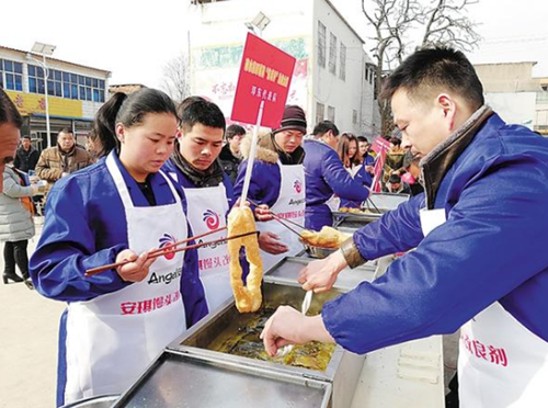 為了讓更多的人利用炸油條走上致富路,鄧城鎮(zhèn)從2012年開始,每年定期舉辦炸油條大賽,或者是技能培訓(xùn),請(qǐng)到一些炸油條的大師或者面點(diǎn)專家,免費(fèi)提供技能培訓(xùn),給想學(xué)炸油條的人搭建一個(gè)平臺(tái)。這個(gè)活動(dòng)也成了當(dāng)?shù)刈顬槭⒋蟮拿朗彻?jié)。目前,炸油條大賽已經(jīng)舉辦了6屆,參加的人數(shù)不斷增加,比賽的代表隊(duì)從剛開始的十幾個(gè)增加到30個(gè)。