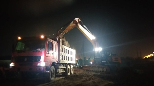 當(dāng)晚22時半許,記者在引黃調(diào)蓄施工現(xiàn)場看到,200余輛工程機(jī)械緊張作業(yè),挖掘機(jī)、推土機(jī)的轟鳴聲震耳欲聾,渣土車來回穿梭,各種施工機(jī)械加足馬力緊張有序地進(jìn)行作業(yè),120余名工人披星戴月堅(jiān)守崗位,加班加點(diǎn)奮戰(zhàn)在施工一線,現(xiàn)場到處一片緊張繁忙的施工景象。