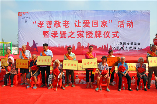 8月30日上午,化河鄉(xiāng)“孝善敬老 讓愛回家”活動暨孝賢之家授牌儀式在該鄉(xiāng)高老村文化廣場舉行??h委常委、統(tǒng)戰(zhàn)部長李遠富、副縣長何海中、縣工會主席盧紅兵應邀出席?;余l(xiāng)黨政班子和近千群眾參加了活動儀式。