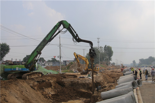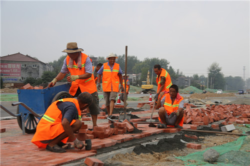 8月28日上午,記者在周項(xiàng)路武盛大道交叉口看到,工程車輛正在馬路南側(cè)人行道鋪設(shè)柏油路面,十幾名工人頂著烈日,在現(xiàn)場(chǎng)作業(yè)。周項(xiàng)路苑寨市場(chǎng)門(mén)前,施工人員正在向基坑內(nèi)打樁,施工人員告訴記者,由于周邊地質(zhì)屬于流沙段,容易塌方,因此需要使用LV拉森鋼板樁進(jìn)行加固。在李埠口鄉(xiāng)政府東側(cè),工人們正在鋪設(shè)地磚。周項(xiàng)路港區(qū)路段,隨處可見(jiàn)施工人員。