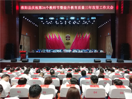 9月3日,在第34個(gè)教師節(jié)來(lái)臨之際,淮陽(yáng)縣慶祝第34個(gè)教師節(jié)暨提升教育質(zhì)量三年攻堅(jiān)工作大會(huì)召開(kāi)。會(huì)議主要目的是總結(jié)一年來(lái)教育工作取得的成績(jī),對(duì)教育戰(zhàn)線(xiàn)涌現(xiàn)出的“優(yōu)秀校長(zhǎng)”“師德標(biāo)兵”“優(yōu)秀班主任”“優(yōu)秀教師”進(jìn)行表彰,并對(duì)全縣提升教育質(zhì)量三年攻堅(jiān)工作進(jìn)行全面動(dòng)員部署。