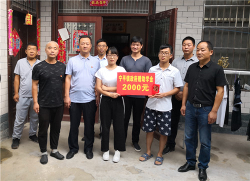 鄲城縣公安局駐王寨行政村第一書記朱金光帶領(lǐng)隊員邵濤、亞光,在走訪調(diào)查中得知這一情況,積極向鄲城縣慈善總會申請助學(xué)金2000元,向團縣委申請希望工程圓夢行動助學(xué)金3000元,并向公安局黨委匯報,局長陳鳳祥、政委趙紅建高度重視召開黨委會研究決定給王海洋家特批6000元助學(xué)金,寧平鎮(zhèn)黨委、鎮(zhèn)政府得到消息后,也第一時間作出響應(yīng),幫助困難孩子圓大學(xué)夢。