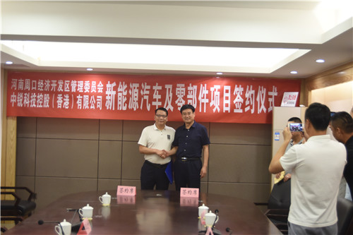 9月5日,周口經(jīng)濟(jì)開發(fā)區(qū)與中銳科技控股(香港)有限公司就新能源汽車及零部件項(xiàng)目建設(shè)成功簽約。開發(fā)區(qū)黨委書記田林、管委會(huì)主任王文峰、管委會(huì)副主任支利民,中銳科技控股(香港)有限公司董事長(zhǎng)張健源、中銳電源公司總經(jīng)理王力和等出席簽約儀式。