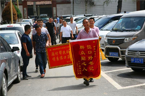 丁喜三代表財(cái)政局黨組對位口村民為財(cái)政局駐村工作隊(duì)贈(zèng)送錦旗和牌匾表示感謝。稱縣財(cái)政局在縣委縣政府正確領(lǐng)導(dǎo)下,對張店鎮(zhèn)位口行政村進(jìn)行駐村幫扶,三年來的駐村工作取得了很大的成績,也存在很多不足,希望位口村廣大群眾對財(cái)政局的駐村扶貧工作多提寶貴意見,同時(shí)對新駐村隊(duì)員提出高的要求,財(cái)政局和位口村干部群眾攜手共同把脫貧攻堅(jiān)工作做好,確保不拖全縣的后腿,在奔小康的路上不落下一人。