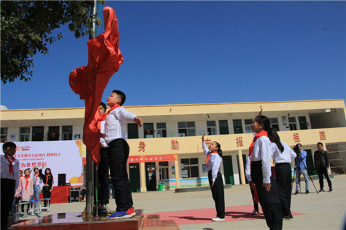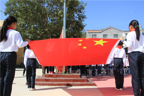 這是一面嶄新的五星紅旗,在藍(lán)天和驕陽的映襯下鮮艷奪目,熠熠生輝。國慶前夕,周口市淮陽縣白樓鎮(zhèn)大李小學(xué),孩子們聚集在一起,戴著同樣鮮艷的紅領(lǐng)巾,參加一場莊重的升旗儀式。在他們看來,這是一種愛國情懷的表達(dá),也是對祖國母親最好的祝福。