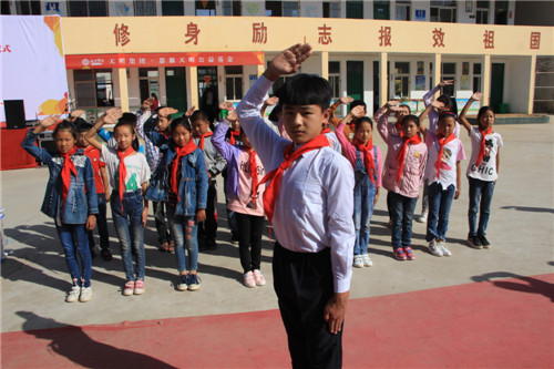 神圣而又雄壯的國歌響起了。孩子們瞪大了眼睛,小擎旗手猛地甩出臂膀,將耀眼的五星紅旗撒在陽光下,全體孩子們行少先隊(duì)隊(duì)禮,注視著國旗冉冉升起。孩子們的歌聲越來越嘹亮,直到最后還在高喊:“前進(jìn),前進(jìn)進(jìn)……”