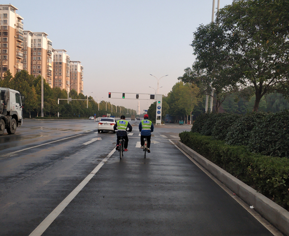 10月3日6時,國際級丈量員、吉林體育學(xué)院教授袁林受中國田徑協(xié)會委派,與周口馬拉松組委會工作人員一起,對周馬新調(diào)整的賽道進行精準丈量。