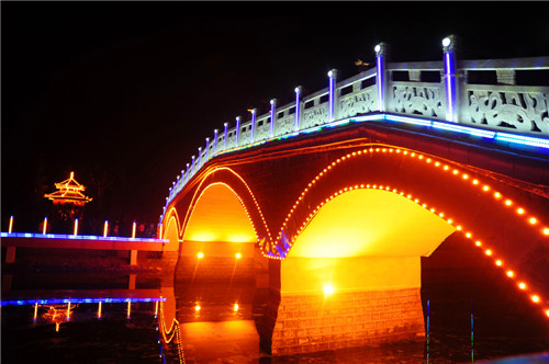 統(tǒng)計(jì)數(shù)據(jù)顯示,貫穿城區(qū)“五河”的濱水景觀廊道目前已達(dá)45公里,環(huán)繞互通的水系雨污分流,清波蕩漾,千年古城活力再現(xiàn);沿岸廣場(chǎng)、游園、玉欄、花木、亭、廊、親水平臺(tái),玲瓏別致,相映成趣,形成了無(wú)數(shù)個(gè)多元空間,為市民提供了休閑健身空間和漫步快跑的理想場(chǎng)所;城區(qū)的50多座街心主題文化園,依勢(shì)而修,與沿河的美化、綠化、亮化融為一體,每天傍晚,清波蕩漾,虹橋飛架,臥波噴泉伴隨著悠揚(yáng)的音樂(lè)翩翩歡舞,“五河”上下,燈火璀璨,絢麗多彩,如夢(mèng)如幻?!熬藕永@真源,五湖潤(rùn)鹿邑”的生態(tài)水系景觀讓行走其間的人恍若走進(jìn)江南水鄉(xiāng),人在水上,水在畫(huà)中的美妙意境讓行走其間的人身心放松、回歸自然。