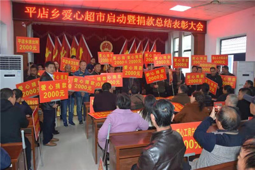 “我們?cè)诖税l(fā)出倡議,請(qǐng)大家伸出援助之手,以舉手之勞為‘愛(ài)心超市’捐助資金 和物資,匯聚全社會(huì)的愛(ài)心正能量,以實(shí)際行動(dòng)助力脫貧攻堅(jiān)......”11月11日上午 ,商水縣平店鄉(xiāng)主抓扶貧工作的人大主席謝學(xué)東,在該鄉(xiāng)隆重召開(kāi)的社會(huì)扶貧“愛(ài)心 超市”啟動(dòng)暨愛(ài)心捐款總結(jié)表彰大會(huì)上再次宣讀了《平店鄉(xiāng)愛(ài)心超市捐款倡議書(shū)》。
