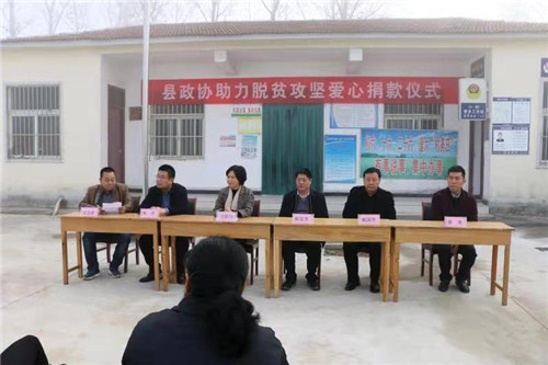 11月13日,在扶溝縣桐丘街道辦事處小胡行政村村委院內,縣政協(xié)副主席郝寶杰將市、縣政協(xié)委員們捐贈的2萬元錢交到小胡、東五村黨支部書記手中,也將政協(xié)委員對脫貧攻堅事業(yè)的愛心傳導到貧困戶的心中。