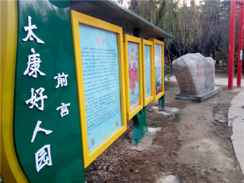 為把好人精神鐫刻在太康發(fā)展和進步的進程中,把太康建設成為好人之城、文明之城、和諧之城、美麗之城、幸福之城,從2018年9月起,太康“好人園”經(jīng)過緊鑼密鼓地籌建,如今開園迎賓。好人園緊扣“好人”主題,以道德風尚建設為主線,在休閑公園的基礎上,秉承“因地制宜、因勢利導”的原則,堅持寓教于園、寓教于景、寓教于樂,以小處著手、局部微調(diào)的手法,通過“好人步道”“好人亭”“好人樹”“好人大舞臺”“好人精神長廊”五大版塊,將道德風尚高地建設與公園的整體風格和功能定位完美結合。好人園兼顧了公園本身特色與文化傳播需要,利用林蔭小道,以石、亭、牌等基礎設施為載體,圖文并茂地展示太康近年來獲得國家和省級表彰的道德典型、身邊榜樣的先進事跡,一步一景,隨景賦形。市民在游園過程中,潛移默化地接受“真、善、美”的教育和熏陶,激發(fā)人們見賢思齊,榜樣的引領作用不斷放大。