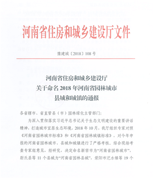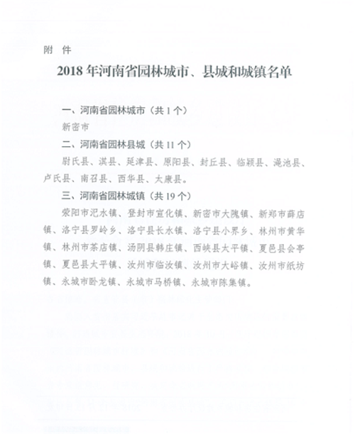 其中,新密市1地被命名為河南省園林城市,太康縣、西華縣、尉氏、淇縣、延津縣、原陽縣等11個縣被命名為河南省園林城市,登封市宜化鎮(zhèn)、新密市大隗鎮(zhèn)、新鄭市薛店鎮(zhèn)等19個鄉(xiāng)鎮(zhèn)被評為河南省園林城鎮(zhèn)。