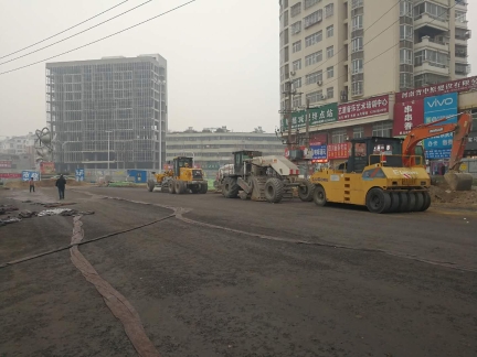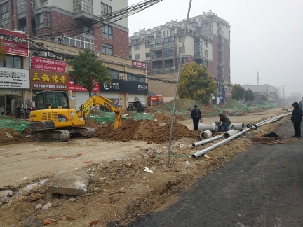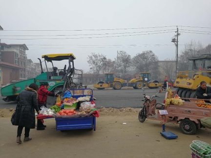 記者今日走訪漢陽路中段(穎河路-建設(shè)路)看到,目前該路段機(jī)動(dòng)車道已鋪上黑色的混凝土物質(zhì),人行道則是壓實(shí)過的土路。壓路機(jī)等設(shè)備??吭诘缆穬深^,并未啟動(dòng),有兩臺挖掘機(jī)及數(shù)十名工人在人行道上,鋪設(shè)下水道。施工路段內(nèi),有不少菜販在沿街叫賣。