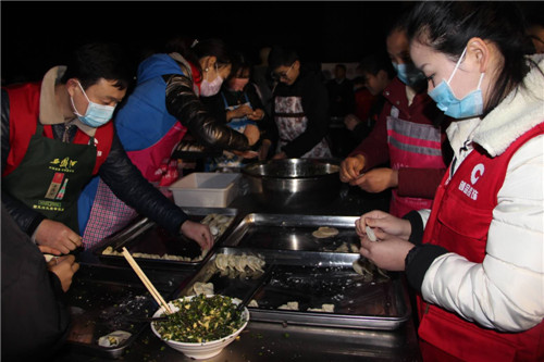 12月22日冬至,是中華民族傳統(tǒng)的重要節(jié)日,每年的今天,太康縣“愛心粥屋”都會舉辦志愿者包餃子獻愛心活動。早上5時,雖然天氣嚴寒,人們大都在夢境中,但“愛心粥屋”的小院里卻燈火通明、人頭攢動,百余名志愿者如約而至,愛心企業(yè)“河南碧海食品”提供的餃子所用食材已擺放到位,來自縣統(tǒng)戰(zhàn)部、縣質(zhì)監(jiān)局、縣物流商會和社會各界志愿者穿上圍裙、帶上口罩、排成三排,他們分工明確,有的和面、有的搟皮、有的包餃子,整個小院歡聲笑語、氣氛融合,場面十分熱鬧喜慶,由于志愿者相互配合默契,包餃子速度也非常的快,在短短的一個小時時間,夠380多名環(huán)衛(wèi)工人食用的2萬余枚餃子都已包制完成。