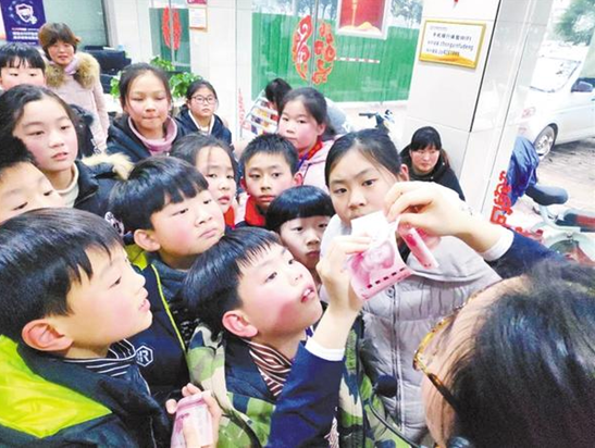 “歡迎各位小記者的到來(lái),大家在過(guò)年的時(shí)候有沒(méi)有收到壓歲錢(qián)呢?”項(xiàng)城中銀富登村鎮(zhèn)銀行公司部經(jīng)理馮靖涵的一句話頓時(shí)讓小記者們從緊張的情緒中釋放出來(lái)?!拔业膲簹q錢(qián),媽媽幫我存在銀行里了!”“我壓歲錢(qián)還放在存錢(qián)罐里,有時(shí)候還會(huì)拿出來(lái)數(shù)一數(shù)!”……小記者們的回答讓家長(zhǎng)們都不由地笑起來(lái)。
