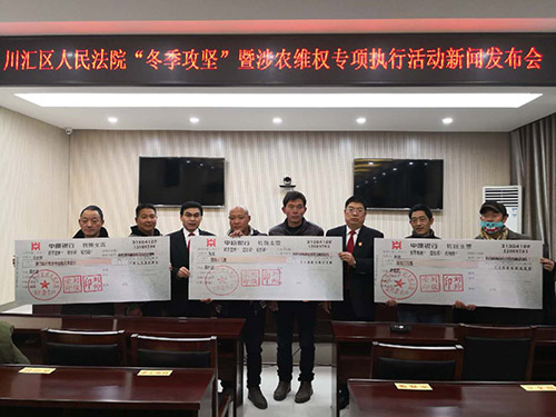 12月26日下午,川匯區(qū)人民法院召開“冬季攻堅”暨涉農(nóng)維權(quán)專項活動新聞發(fā)布會。周口日報等新聞媒體和川匯區(qū)法院執(zhí)行警務局40余名干警參加了座談會。發(fā)布會現(xiàn)場,共為三名農(nóng)名工代表發(fā)放自行款21.5萬元。