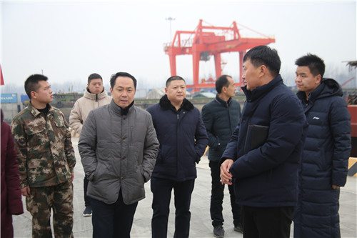 在周口中心港碼頭,程若光向負(fù)責(zé)人了解當(dāng)前港口碼頭設(shè)備的運轉(zhuǎn)運行情況后,要求港口碼頭要在確保安全生產(chǎn)的情況下開展各項工作。