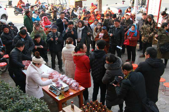 小小燒烤店門(mén)前,成了倡導(dǎo)“愛(ài)與奉獻(xiàn)主會(huì)場(chǎng)”。 2019年1月1日上午10點(diǎn),新年第一天,鄭州市國(guó)基路與豐慶路交叉口太康烤全羊店門(mén)口,60多名環(huán)衛(wèi)工、殘疾人、困難群眾等弱勢(shì)群體聚集在這里,排隊(duì)免費(fèi)領(lǐng)取“羊肉哥”孫合理和妻子劉曉愛(ài)派送的一份新年禮物——愛(ài)心羊肉,而這愛(ài)舉從2010年元旦開(kāi)始到如今,已經(jīng)堅(jiān)持了9年。