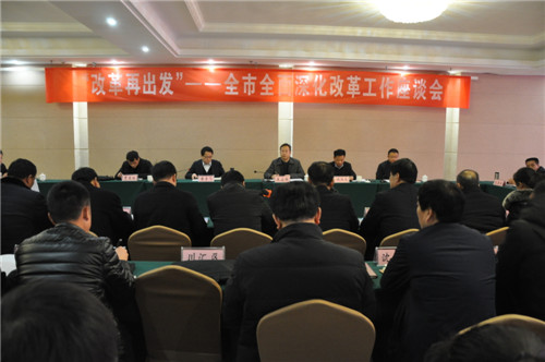 1月9日,“改革再出發(fā)”— 全市全面深化改革工作座談會在商水召開。會議對40年來全市改革開放取得的顯著成績和變化進行暢談式總結(jié)回顧,對今后一個時期深化改革工作進行相互啟發(fā)式思考謀劃。