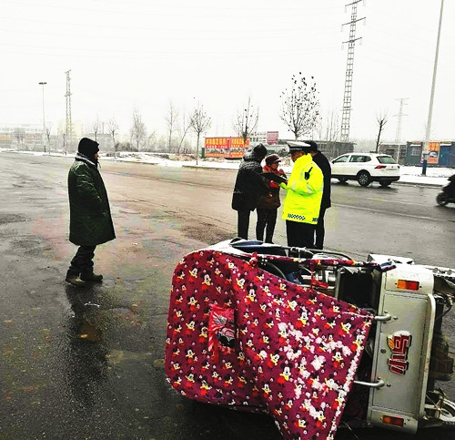 交警雪中處理交通事故