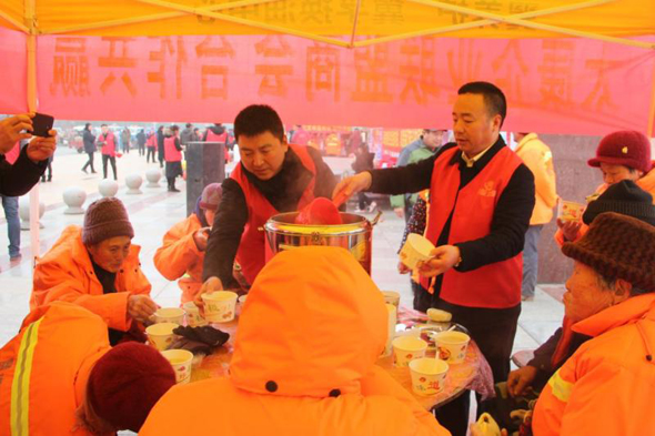 1月13日,為傳承臘八習俗、傳遞愛心,由太康縣工商聯(lián)主辦、太康縣企業(yè)聯(lián)盟商會承辦的以“一碗臘八粥 溫暖一座城 愛心在行動”為主題的臘八粥分享活動在縣人民廣場舉行,給起早貪黑不辭辛苦的城市美容師、保道路暢通的公安民警、救死扶傷的白衣天使、風刮日曬的外賣小哥、高齡老人、老黨員等送去濃濃的溫情。