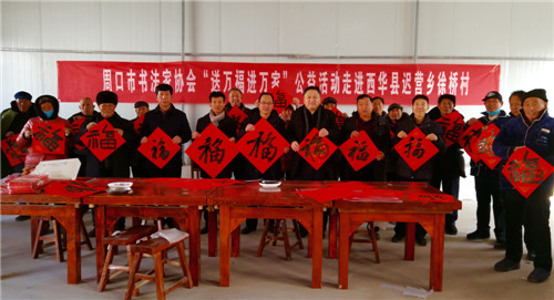 周口市財(cái)政局駐西華縣遲營鄉(xiāng)徐橋村第一書記劉永健說,通過精準(zhǔn)扶貧,徐橋村今年實(shí)現(xiàn)貧困村摘帽、貧困戶脫貧。春節(jié)前夕,周口市書法家協(xié)會(huì)到徐橋村寫春聯(lián)、送萬福,把黨的關(guān)懷和溫暖,把書法家對群眾的美好祝福送進(jìn)千家萬戶,這樣的活動(dòng)非常有意義。
