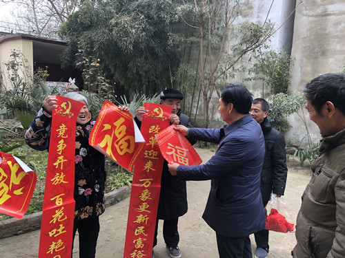 據(jù)了解,當天下午時莊村黨支部訂制的3000多套春聯(lián),免費贈給448戶村民。記者看到,這些春聯(lián)的內容都是承載著黨和政府的關懷,有的是歌頌改革開放的,有的是幸福報黨恩的。該村村民朱在靈領到春聯(lián)后立刻把春聯(lián)拿回家,他將門頭擦干凈后把春聯(lián)貼了上去。在門口懸掛著的國旗的襯托下,顯得格外喜慶。“村里免費發(fā)這種帶黨徽的春聯(lián)已經(jīng)第三年了,這種春聯(lián)傳遞了黨的好聲音,推動了群眾對黨的擁護,現(xiàn)在村民的精神面貌也貌煥然一新。”朱在靈高興地說。