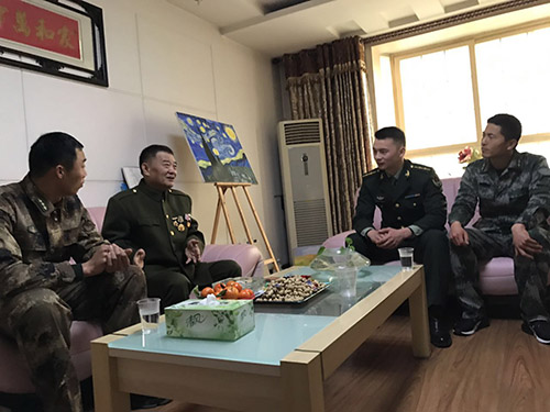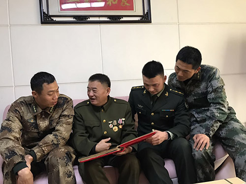 柳東坡、劉威、崔二偉3名年輕軍官聽完老英雄的講述后心靈受到極大震撼,一度落下激動(dòng)地淚花。他們向海水干匯報(bào)了各自在部隊(duì)立功受獎(jiǎng)的情況。“強(qiáng)軍先鋒”柳東坡現(xiàn)為80集團(tuán)軍某旅副營長(zhǎng),在斯洛伐克國際特種兵比武、中俄聯(lián)演以及全軍特種兵比武中表現(xiàn)優(yōu)異,先后榮立一等功、二等功各一次,三等功3次;“天山兵王”劉威現(xiàn)任新疆軍區(qū)某團(tuán)副連長(zhǎng),在國際軍事比賽、軍區(qū)偵察兵比武中脫穎而出、成績(jī)顯著,入伍來先后榮立一等功、二等功各一次,三等功2次;“狙擊神槍手”崔二偉曾被總參謀部表彰為“全軍優(yōu)秀狙擊手”,先后榮立一等功、二等功各一次。