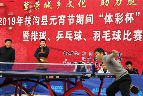 2月17日上午,元宵佳節(jié)即將來臨之際,在全縣脫貧攻堅沖刺的關(guān)鍵時期,扶溝縣2019年元宵節(jié)“體彩杯”全民健身展示暨排球、乒乓球、羽毛球比賽活動在縣體育館隆重開幕?;顒又荚谪S富全縣廣大人民群眾的文化生活,助力脫貧攻堅,為實現(xiàn)“五個扶溝”增光添彩??h委常委、宣傳部長馬昭才,副縣長吳興華等出席開幕式??h委宣傳部副部長張根主持開幕式。