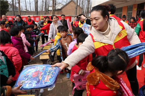 精彩的武術(shù),漂亮的書包、校服……3月3日,太康縣王集鄉(xiāng)新店鋪小學(xué)106名學(xué)生每人收到了一份“大禮包”。當(dāng)日,太康縣委宣傳部和縣文明辦在新店鋪村舉辦太康縣“好人節(jié)”暨學(xué)雷鋒“小手拉大手”志愿服務(wù)活動(dòng),30多名志愿者為學(xué)生們發(fā)放了書包、文具和校服等,并深入貧困戶家中幫助打掃庭院衛(wèi)生,受到村民的一致好評(píng)。