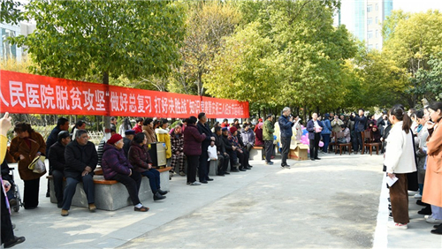 運動會共設四個項目:你演我猜、踩氣球、搶凳子和蒙眼擊鼓。講究默契的你演我猜,團隊協(xié)作的踩氣球,笑料百出的蒙眼擊鼓,讓整個賽場充滿著歡聲笑語。激烈的比賽也引來了患者及家屬的圍觀,他們也被這歡樂的氣氛感染,臉上綻放出了笑容。在競爭激烈的搶凳子比賽中,主持人加入了知識問答環(huán)節(jié),沒搶到凳子的要回答主持人提出的扶貧措施問題,隨著一個個參賽者被淘汰,醫(yī)院的各項扶貧措施也給圍觀者們留下了深刻的印象。