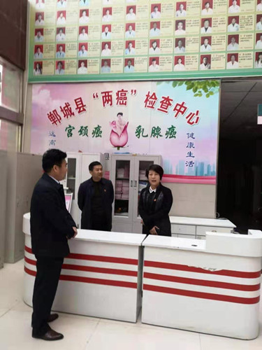 近日,鄲城縣副縣長肖煒、縣衛(wèi)計(jì)委主任付登霄一行,到鄲城縣婦幼保健院檢查指導(dǎo)“兩癌”免費(fèi)篩查工作,該院院長亢國良、院工會(huì)主席楊敏陪同檢查。