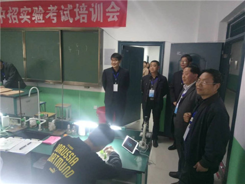 劉現(xiàn)營(yíng)還走進(jìn)考場(chǎng)現(xiàn)場(chǎng)察看學(xué)生操作考試情況,查看學(xué)生已上交的考試試題,了解理化生實(shí)驗(yàn)考試各科分值。并對(duì)監(jiān)考老師敬業(yè)精神提出了表?yè)P(yáng)。