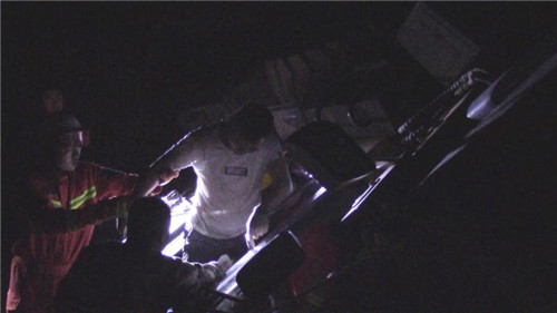 當(dāng)夜,消防指戰(zhàn)員接到調(diào)派命令后迅速趕往事故現(xiàn)場。指揮員觀察了解得知,側(cè)翻的是一輛重型推土車,由于作業(yè)區(qū)地面不平,司機(jī)在倒車時(shí)車輛發(fā)生側(cè)翻,欲打開車門跳車未果,左臂反而被車輛駕駛室一側(cè)死死壓在地面上,無法動(dòng)彈。當(dāng)時(shí)工地上沒有同事,周邊也沒有行人,呼救無應(yīng)后,司機(jī)忍著巨烈疼痛摸到手機(jī)電話求救。