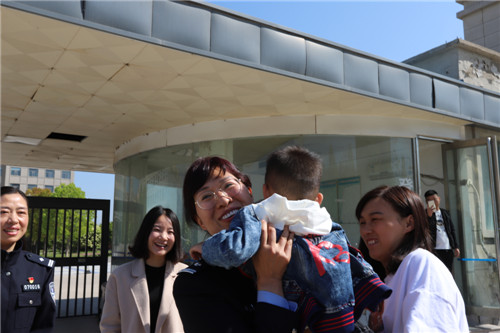 過了一會兒,微信群里傳來消息,稱小男孩是小區(qū)一居民的親戚,家人正在急切尋找。陳愛華趕緊領著孩子下樓,在小區(qū)門口見到心急如焚的孩子父母,并把孩子交給他們。母子相擁而泣,并連聲向陳愛華道謝。