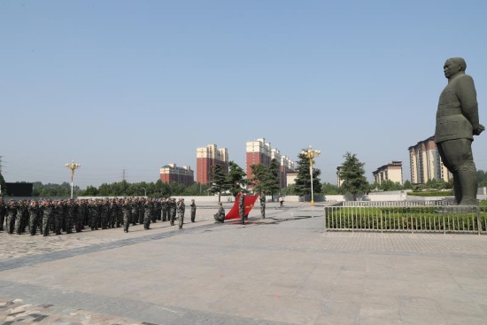 “我是中國民兵,我宣誓:服從中國共產(chǎn)黨領(lǐng)導,積極參加國家建設,忠實履行國防義務,遵紀守法,服從命令,忠于職守,努力學習……”當日上午,在吉鴻昌將軍塑像前,太康縣全體基干民兵集體重溫了民兵誓詞。