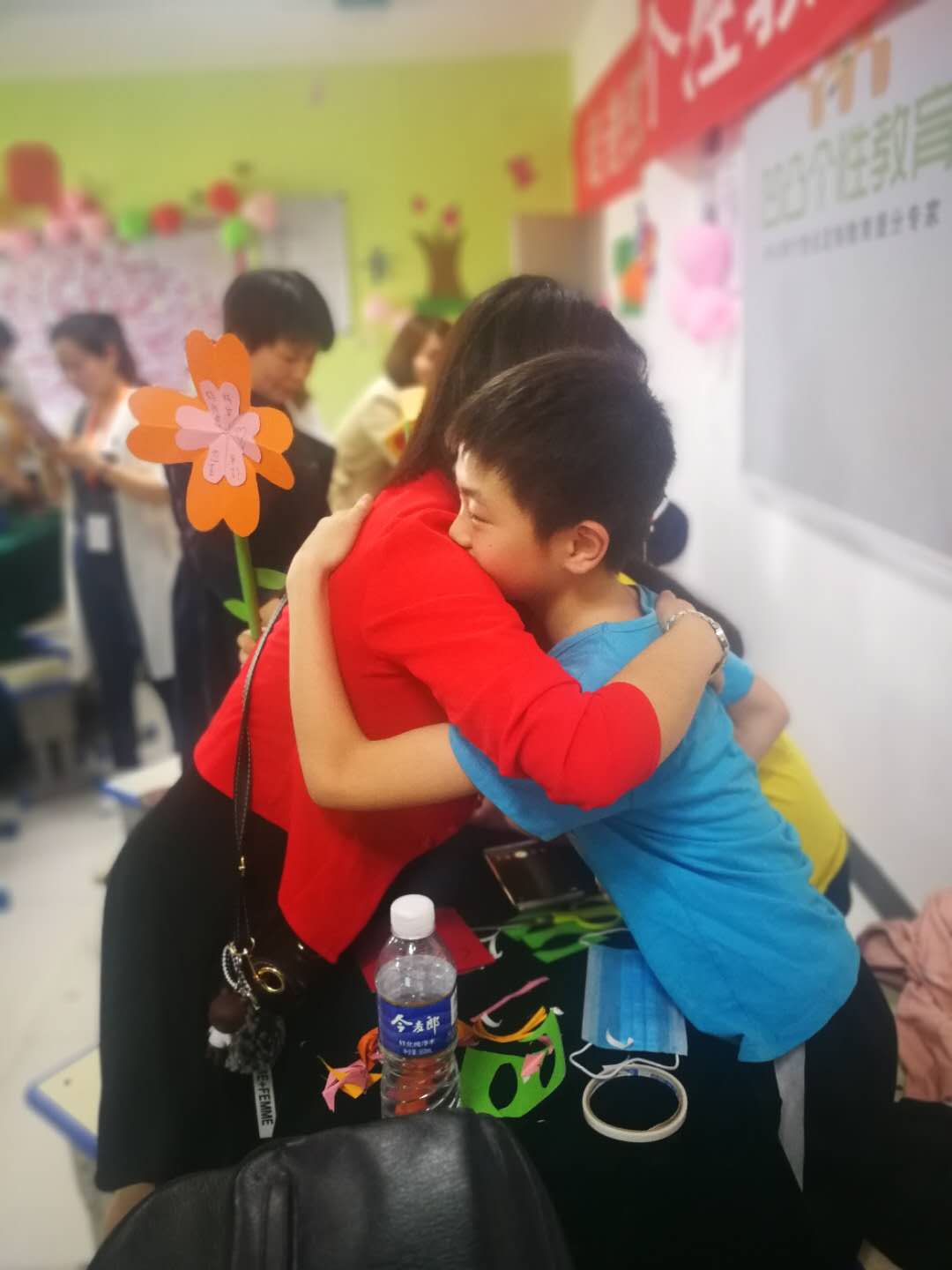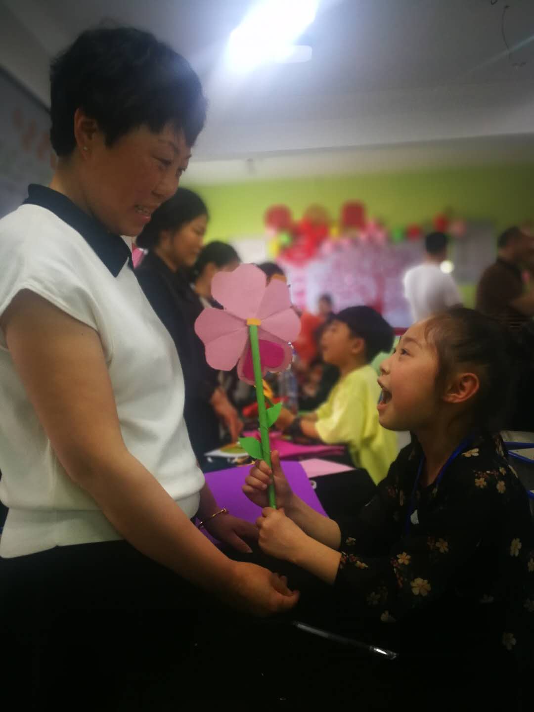 活動上,在專業(yè)手工教師的指導(dǎo)以及媽媽的配合下,這些小記者自己動手利用剪刀、雙面膠、彩紙等學(xué)習(xí)制做康乃馨紙花。五層紅色的花瓣、兩片綠葉、一根花枝,經(jīng)過近一個小時的反復(fù)實踐,一朵朵紙花陸續(xù)制好,成功的喜悅映紅了孩子們的笑臉。在祝??ㄆ蠈懴聦寢尩淖8UZ后,孩子們手捧用彩紙包裝好的紙花,拿著祝??ㄋ偷侥赣H手中,和媽媽熱情擁抱、向媽媽表達愛的祝福。
