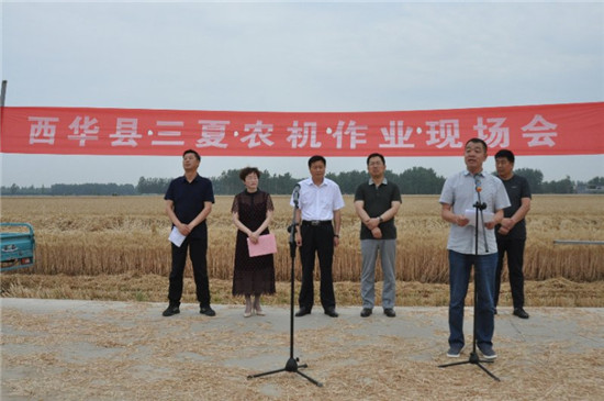 “麥浪滾滾閃金光,秣馬厲兵迎三夏”。值此三夏大忙到來之際,6月1日上午,西華縣農(nóng)機局在東王營鄉(xiāng)東王營村舉辦三夏農(nóng)機作業(yè)現(xiàn)場會,周口市農(nóng)機局黨組書記、局長劉偉,西華縣委副書記、政法委書記程維崢,縣政府副縣長毛茹,東王營鄉(xiāng)黨委、政府主要負責同志,各鄉(xiāng)鎮(zhèn)、辦事處分管農(nóng)業(yè)農(nóng)村工作副職,東王營鄉(xiāng)部分村支部書記,縣農(nóng)機局全體干部職工和部分農(nóng)機合作社理事長等共80余人參加了演示會。