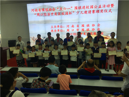 6月1日,省圍棋協(xié)會在周口經濟開發(fā)區(qū)實驗學校舉行慶“六一”圍棋進校園公益活動暨校園杯圍棋邀請賽。省圍棋協(xié)會副會長郭寶林、秘書長袁曦、副秘書長張新華,市工信委主任姚衛(wèi)田,周口圍棋協(xié)會有關領導參加。