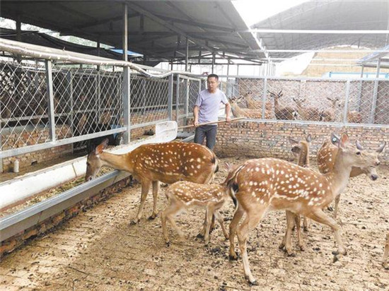 在沈丘縣卞路口鄉(xiāng)趙莊村,返鄉(xiāng)大學生趙沛陽從2018年開始學習梅花鹿飼養(yǎng)技術(shù),并投資100多萬元建起養(yǎng)殖場,發(fā)展特色養(yǎng)殖業(yè),收益可觀。在養(yǎng)鹿過程中,趙沛陽優(yōu)先聘用周邊貧困群眾到養(yǎng)殖場工作,不僅給他們發(fā)工資,還教給他們養(yǎng)殖技術(shù),幫助貧困群眾脫貧致富。記者 韋偉 攝
