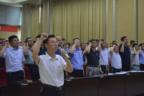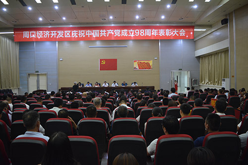 上午9點,會議在國歌聲中開幕。會上,開發(fā)區(qū)黨委對先進基層黨組織、優(yōu)秀基層黨支部書記、優(yōu)秀共產(chǎn)黨員、優(yōu)秀黨務(wù)工作者和學(xué)習(xí)標兵進行表彰。全體與會人員面向黨旗,重溫入黨誓詞。黨委書記王文峰為大家上黨課。