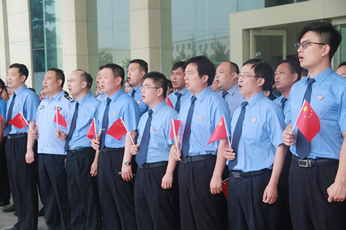 “沒有共產(chǎn)黨就沒有新中國,沒有共產(chǎn)黨就沒有新中國,共產(chǎn)黨,辛勞為民族,共產(chǎn)黨他一心救中國……”音樂響起那一刻,西華縣檢察院全體干警莊嚴站立,他們內(nèi)心澎湃,他們?yōu)樽约菏侵腥A兒女的一員而自豪。